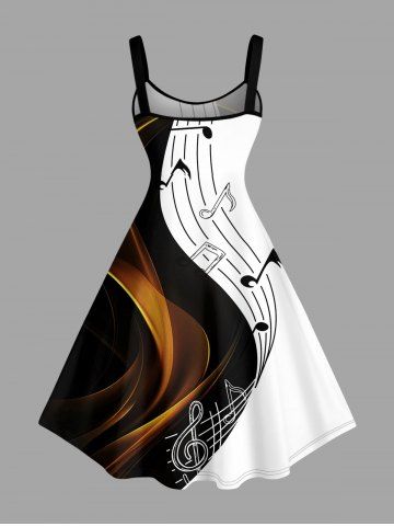 Plus Size Curve Music Symbol Print Hawaii A Line Dress - White - 5x