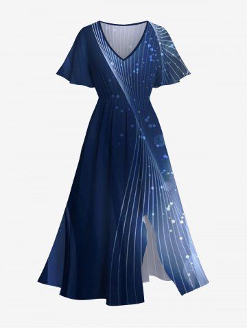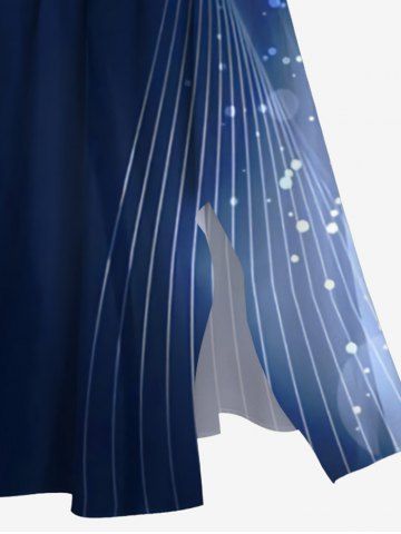 Plus Size Curve Ombre Light Beam Galaxy Print Hawaii Split Pocket A Line Midi Dress - Midnight Blue - Xs