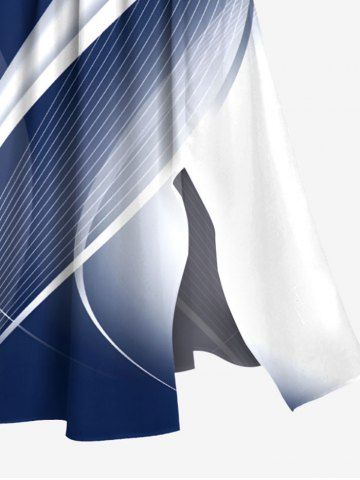 Plus Size Curve Ombre Light Beam Print Hawaii Split Pocket A Line Midi Dress - Blue - Xxs