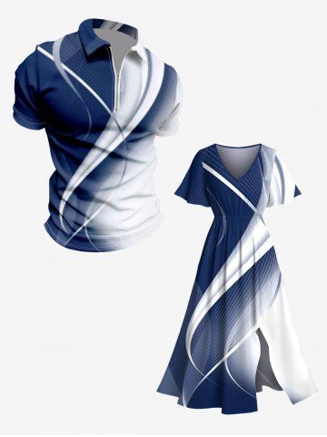 Plus Size Curve Ombre Light Beam Print Hawaii Split Pocket A Line Midi Dress - Blue - S