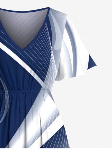 Plus Size Curve Ombre Light Beam Print Hawaii Split Pocket A Line Midi Dress - Blue - 5x