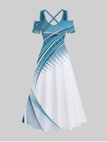 Graphic Dresses > Plus Size Curve Ombre Round Spotted Print Hawaii Crisscross A Line Maxi Dress