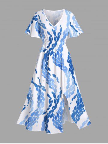 Plus Size Curve Ombre Sea Wave Print Hawaii Split Pocket A Line Midi Dress - Light Blue - 6x