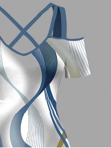 Plus Size Curve Pattern Print Cold Shoulder Crisscross Hawaii Maxi Dress - White - Xs