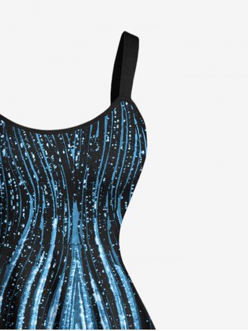 Plus Size Curve Pattern Sparkling Sequin 3D Print Hawaii Tank Dress - Blue - 3x