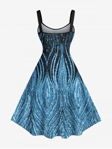 Plus Size Curve Pattern Sparkling Sequin 3D Print Hawaii Tank Dress - Blue - 4x