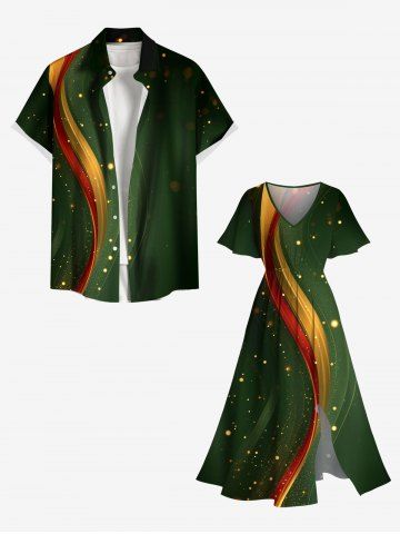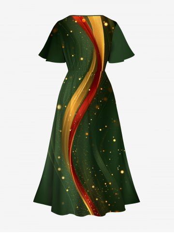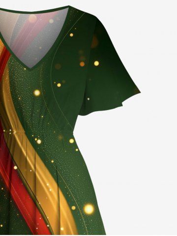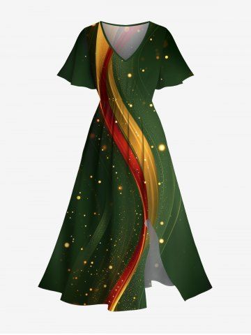 Graphic Dresses > Plus Size Curve Ribbon Light Beam Galaxy Print Hawaii Ombre Split Pocket A Line Midi Dress