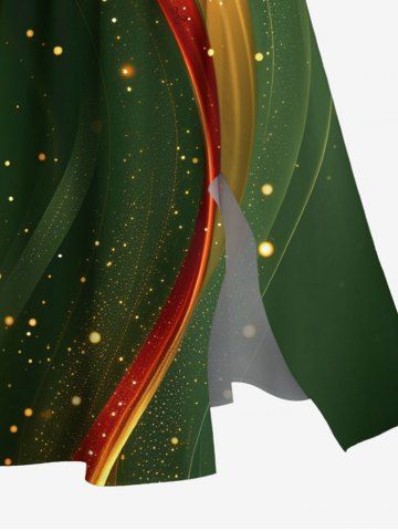 Plus Size Curve Ribbon Light Beam Galaxy Print Hawaii Ombre Split Pocket A Line Midi Dress - Black - Xs