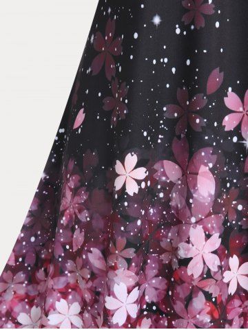Plus Size & Curve Sakura Flower Crisscross A Line Sundress - Black - 1x | Us 14-16