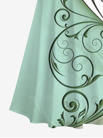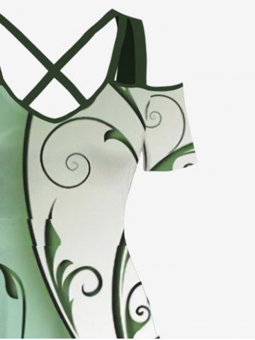 Plus Size Curved Line Floral Two Tone Print Hawaii Ombre Crisscross A Line Maxi Dress - Green - 3x