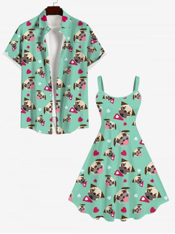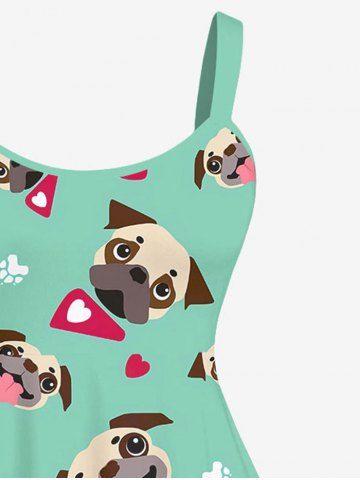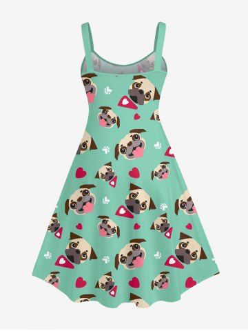 Plus Size Cute Dog Heart Paw Print Backless A Line Tank Dress - Green - Xs