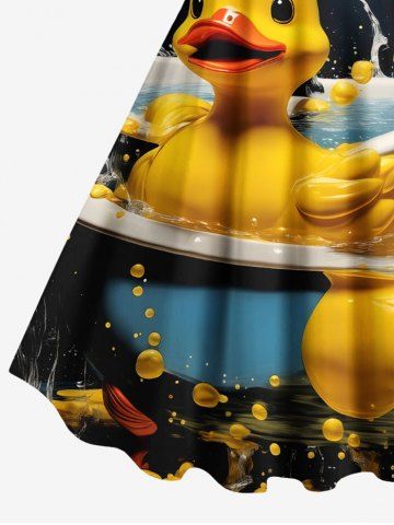 Plus Size Cute Duck Bathtub Print Hawaii A Line Tank Dress - Yellow - S