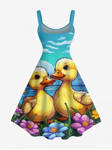 Graphic Dresses > Plus Size Cute Duck Flower Sky Print Hawaii A Line Dress