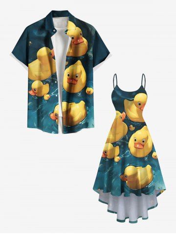 Graphic Dresses > Plus Size Cute Duck Pond Print Hawaii Ombre High Low Asymmetric Cami Dress
