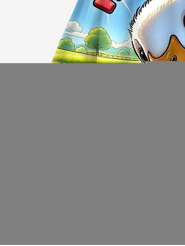 Plus Size Cute Duck Pond Sun Print Hawaii Button A Line Dress with Removable Belt - Blue - S