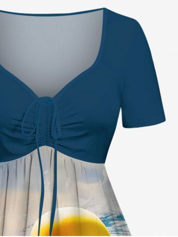 Graphic Dresses > Plus Size Cute Duck Sea Waves Flower Print Hawaii Cinched A Line Dress