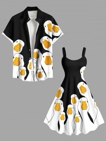 Plus Size Cute Goose Print Hawaii A Line Tank Dress - Black - 1x