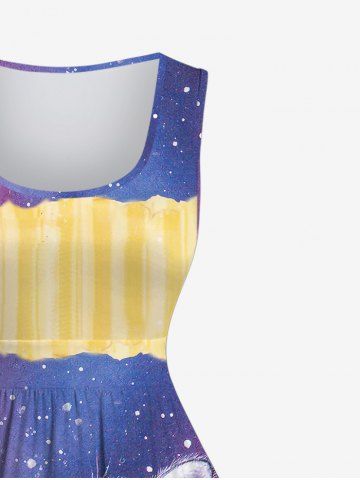 Plus Size Cute Rabbit Striped Colored Egg Ombre Galaxy Painting Splatter Print Sleeveless A Line Dress - Purple - 3x