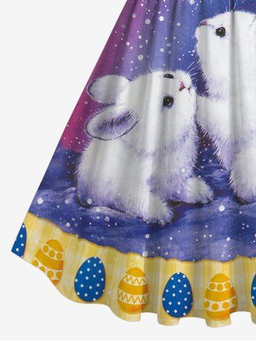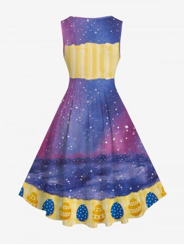 Plus Size Cute Rabbit Striped Colored Egg Ombre Galaxy Painting Splatter Print Sleeveless A Line Dress - Purple - 5x