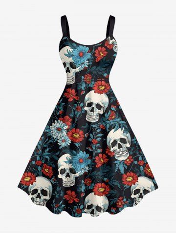 Graphic Dresses > Plus Size Daisy Flowers Leaf Skull Print Hawaii Tank Dress