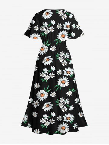 Plus Size Daisy Flowers Print Split Hawaii Midi Dress - Black - L
