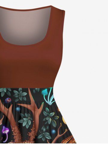 Graphic Dresses > Plus Size Deer Head Mushroom Floral Print Hawaii 1950s Vintage Swing A Line Dress