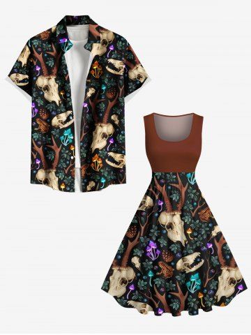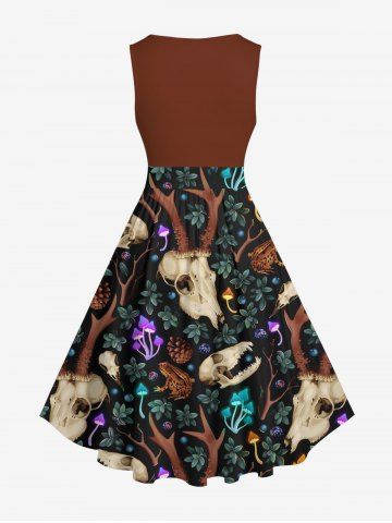 Graphic Dresses > Plus Size Deer Head Mushroom Floral Print Hawaii 1950s Vintage Swing A Line Dress