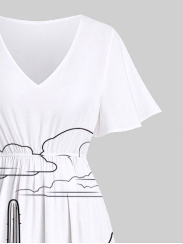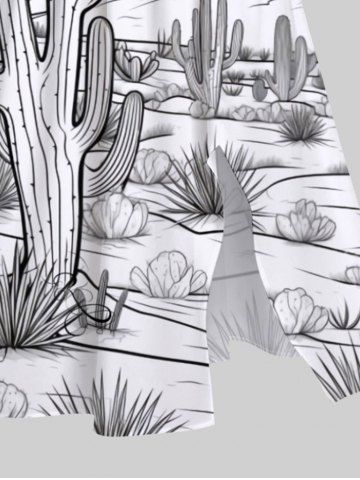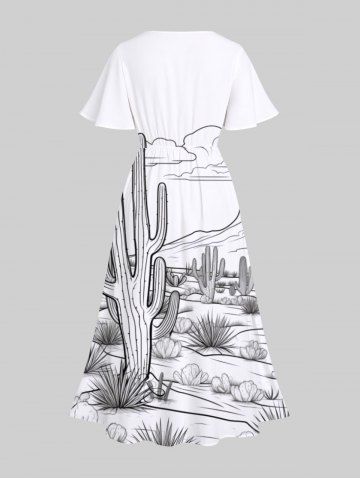 Plus Size Desert Cactus Plant Print Split Midi Dress - White - M