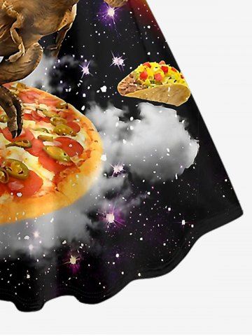 Plus Size Dinosaur Cat Pizza Rainbow Galaxy Print Hawaii Tank Dress - Black - 3x