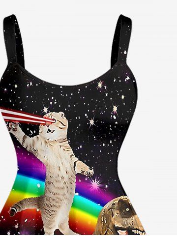 Plus Size Dinosaur Cat Pizza Rainbow Galaxy Print Hawaii Tank Dress - Black - 6x