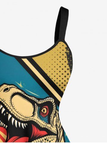 Graphic Dresses > Plus Size Dinosaur Colorblock Patchwork Print A Line Tank Dress