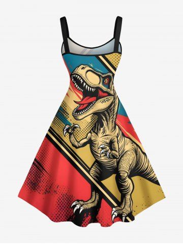 Graphic Dresses > Plus Size Dinosaur Colorblock Patchwork Print A Line Tank Dress