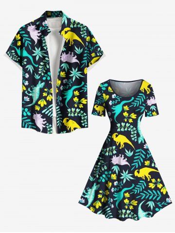 Graphic Dresses > Plus Size Dinosaur Floral Leaves Branch Print Hawaii Vintage A Line Dress