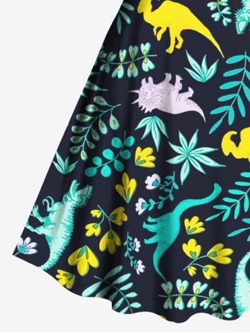 Graphic Dresses > Plus Size Dinosaur Floral Leaves Branch Print Hawaii Vintage A Line Dress