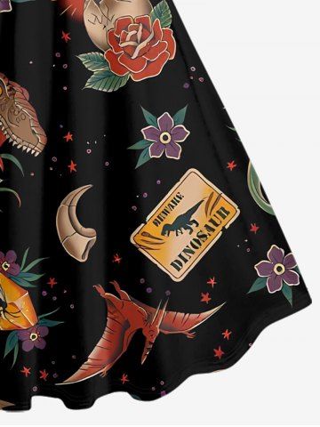 Plus Size Dinosaur Flower Print Hawaii A Line Dress - Black - Xs