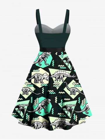 Plus Size Dinosaur Geometric Graphic Zig Zag Print Hawaii A Line Dress with Removable Belt - Black - 1x