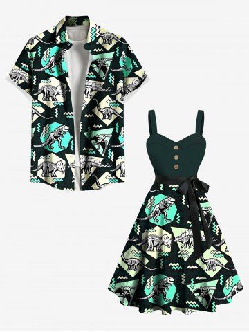 Graphic Dresses > Plus Size Dinosaur Geometric Graphic Zig Zag Print Hawaii A Line Dress with Removable Belt