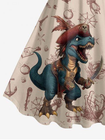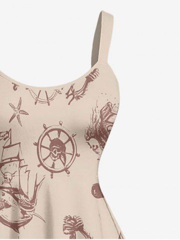 Plus Size Dinosaur Pirate Ship Rudder Print Hawaii Tank Dress - Tan - S