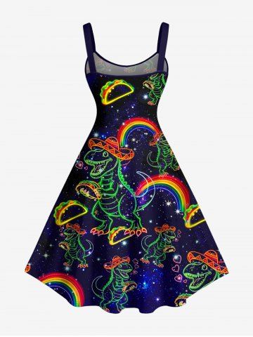 Plus Size Dinosaur Rainbow Hot Dog Heart Galaxy Print Hawaii Tank Dress - Black - 5x