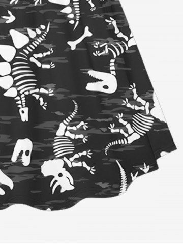 Plus Size Dinosaur Skeleton Print Cinched Hawaii Dress - Black - M