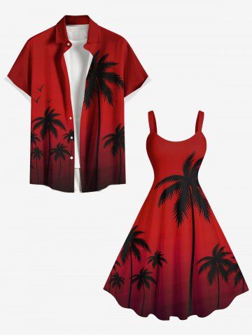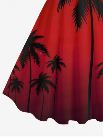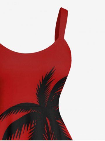 Plus Size Dip Dye Ombre Coconut Tree Print Hawaii A Line Tank Dress - Red - 1x