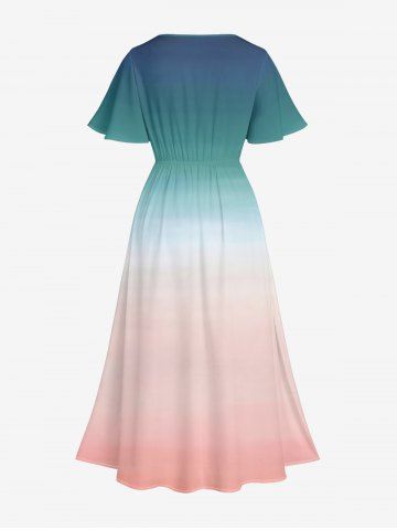 Plus Size Dip Dye Ombre Print Hawaii Split Pocket A Line Midi Dress - Dark Turquoise - 4x