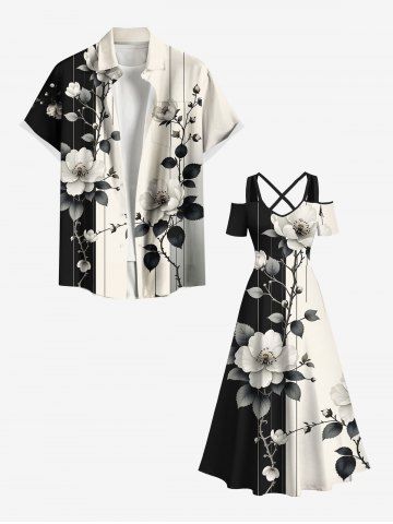 Plus Size Distressed Flower Leaf Branch Ombre Colorblock Print Hawaii Crisscross A Line Maxi Dress - Black - 2x