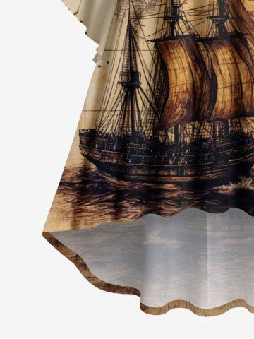Graphic Dresses > Plus Size Distressed Map Sailboat Print Hawaii Cruise Ruched High Low Asymmetric Dress