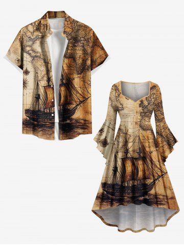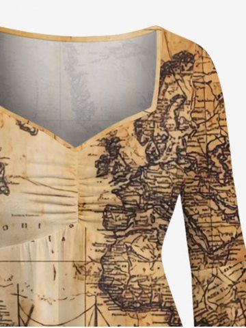 Graphic Dresses > Plus Size Distressed Map Sailboat Print Hawaii Cruise Ruched High Low Asymmetric Dress