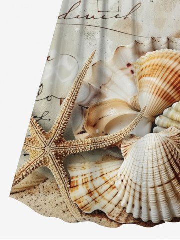 Graphic Dresses > Plus Size Distressed Ombre Letter Shell Starfish Print Hawaii Surplice A Line Cami Dress