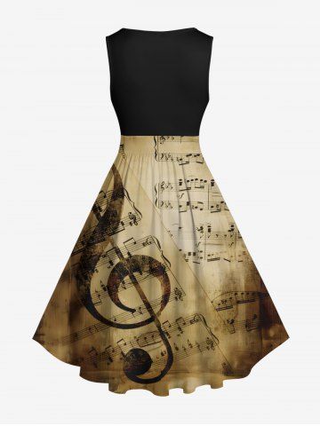 Graphic Dresses > Plus Size Distressed Ombre Music Symbol Print Hawaii Vintage 1950s Swing A Line Dress