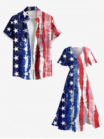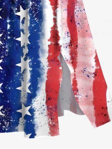 Graphic Dresses > Plus Size Distressed Patriotic American Flag Print Split Pocket A Line Midi Dress