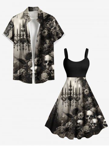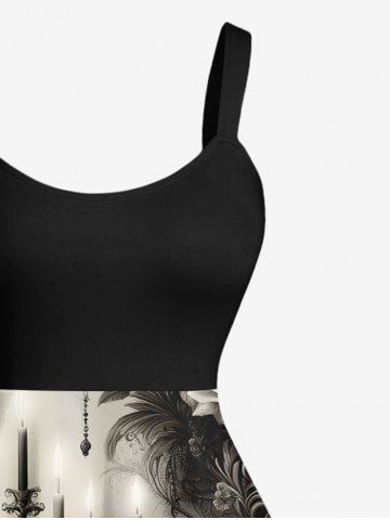 Plus Size Distressed Skull Rose Flower Chandelier Print Ombre A Line Tank Dress - Black - Xxs