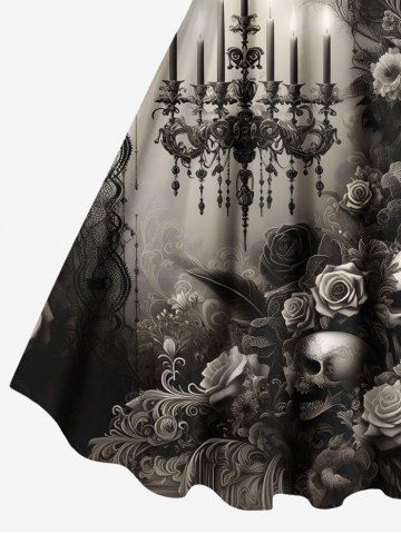 Graphic Dresses > Plus Size Distressed Skull Rose Flower Chandelier Print Ombre A Line Tank Dress